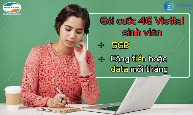 Nhằm tạo điều kiện tốt nhất để các thuê bao sinh viên, học sinh có thể học tập và giải trí với công nghệ mạng 4G Viettel siêu tiết kiệm nhà mạng đã triển khai gói cước 4G Viettel sinh viên với giá siêu ưu đãi. Chỉ với 50k/tháng bạn sẽ nhận ưu đãi 5GB data hoặc cộng tiền lên đến 25.000đ/tháng. Để biết thêm chi tiết theo dõi bài viết sau của Dichvudidong.vn nhé.