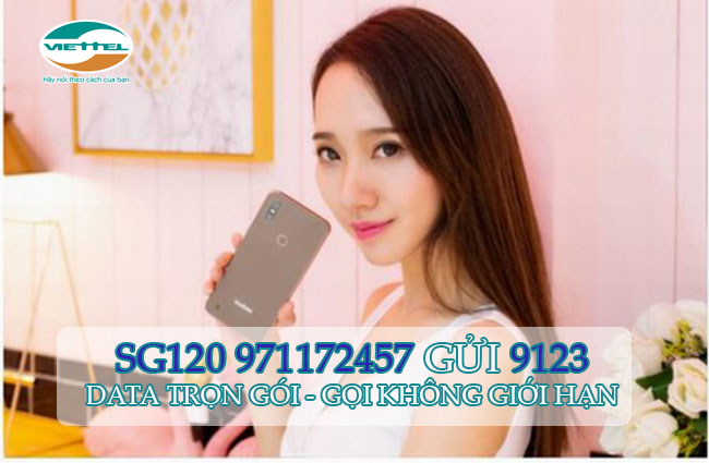Chỉ với 120.000đ/ tháng đăng ký gói SG120 Viettel bạn sẽ có thể thả ga lướt web và gọi thoại. Đây là gói cước ưu đãi dùng internet không giới hạn data và còn được ưu đãi gọi miễn phí nội mạng, thêm 40 phút ngoại mạng. Soạn ngay SG120 971172457 gửi 9123 cài đặt gói cước hấp dẫn này cho thuê bao nhé!